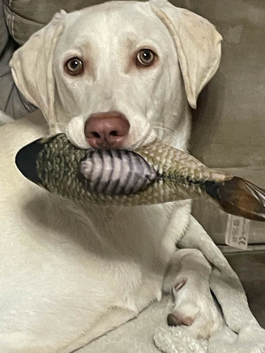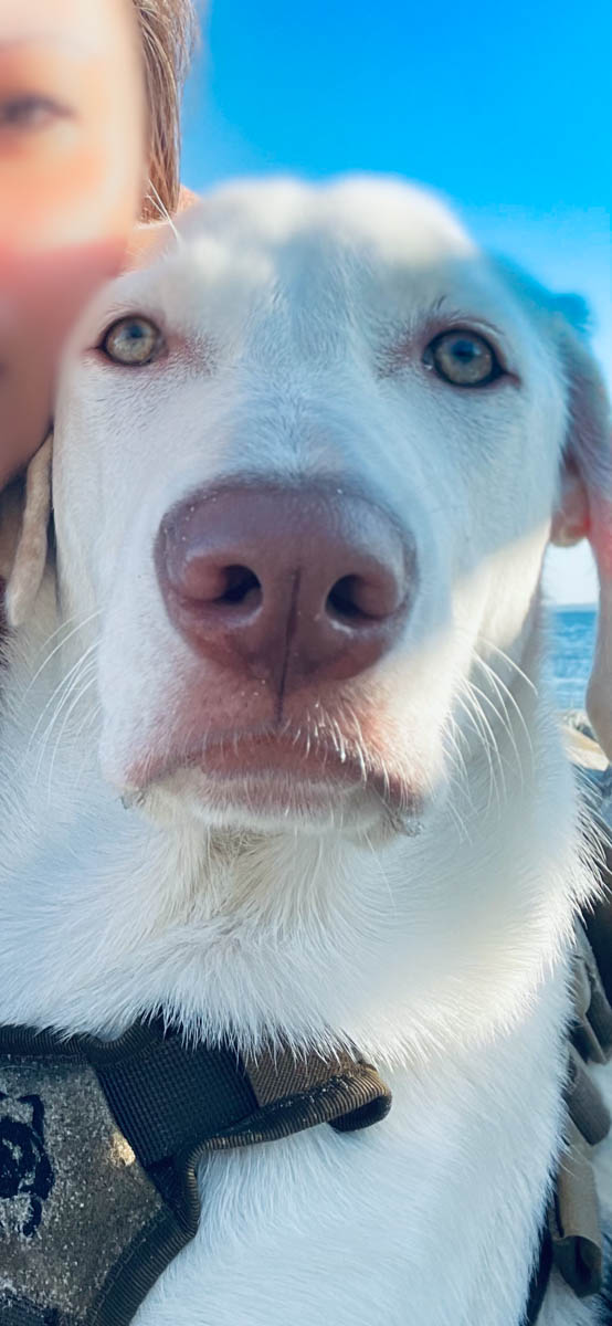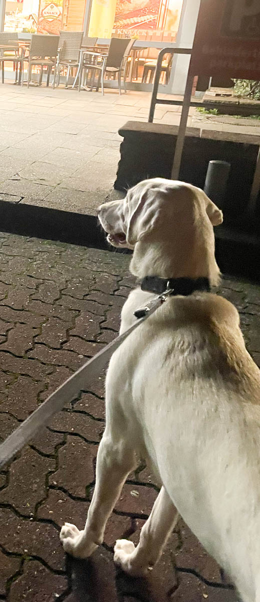 Sie ist stubenrein, fährt problemlos Auto (auch lange Strecken) und kennt schon einige Kommandos wie "Sitz", "Platz", "Stopp" und "Langsam". Sie ist intelligent, lernfreudig und stets achtsam. Sie mag Intelligenzspielzeug, Ballspiele und hat großen Spaß am Mantrailing.