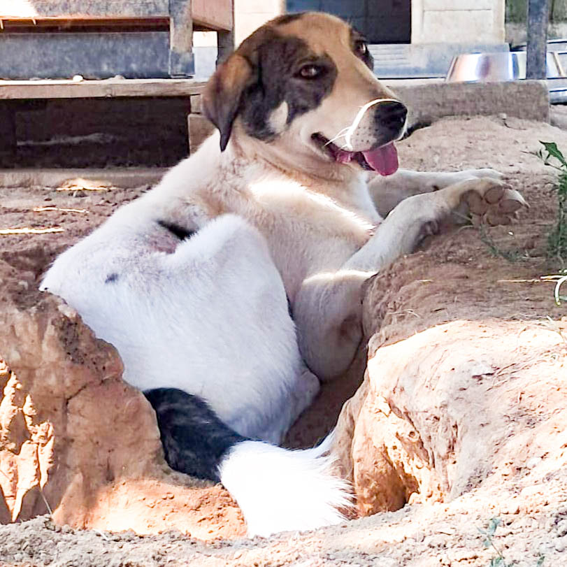 Sie lebt aktuell in einem größeren Rudel und zeigt sich dort absolut verträglich. Menschen gegenüber ist sie freundlich und ausgeglichen. Arianna genießt es, in der Nähe zu sein, drängt sich aber nie auf. Besonders wohl fühlt sie sich an schattigen Plätzen, gerne auch in einer selbst gegrabenen Mulde.