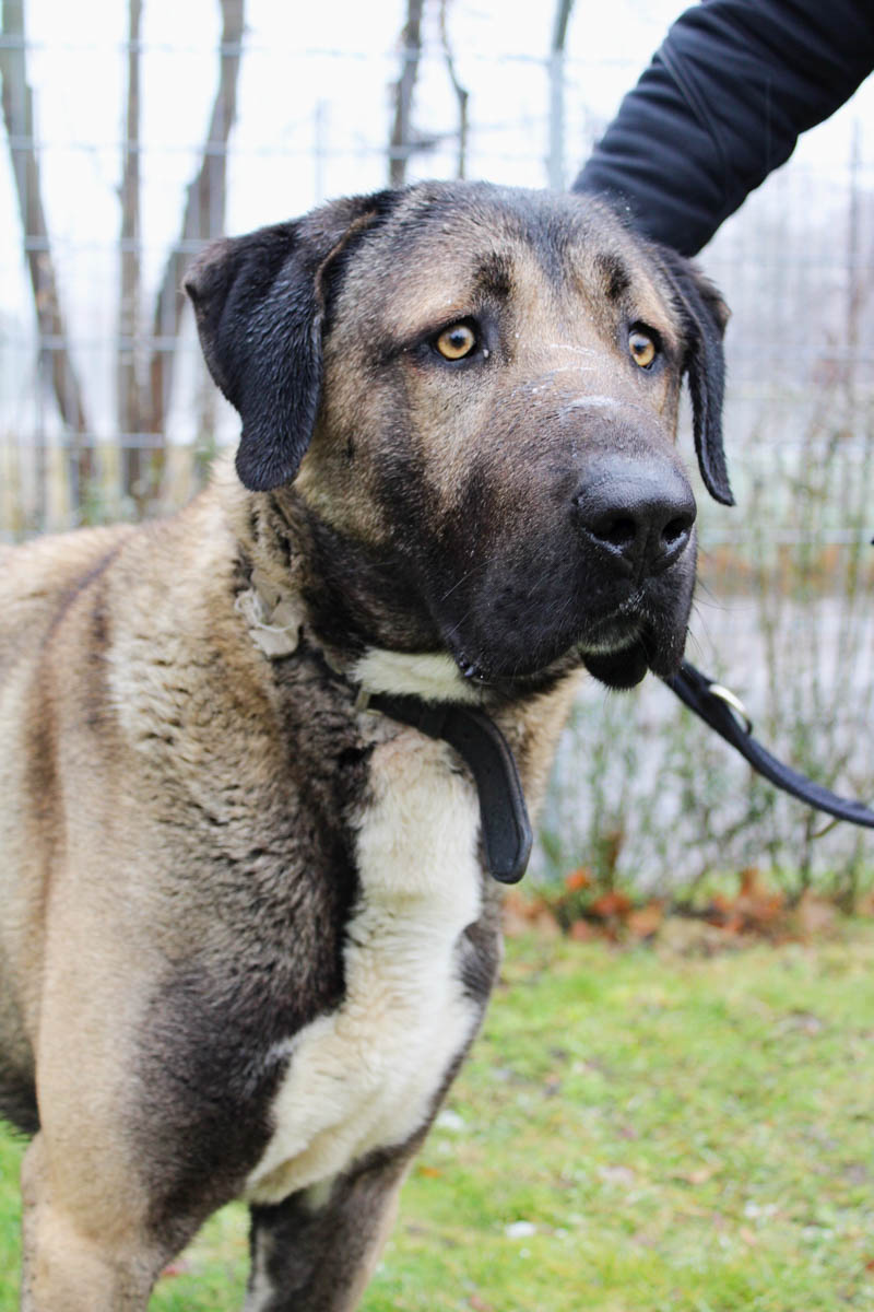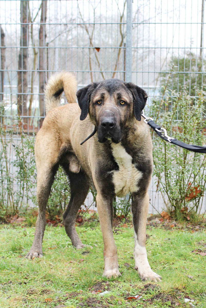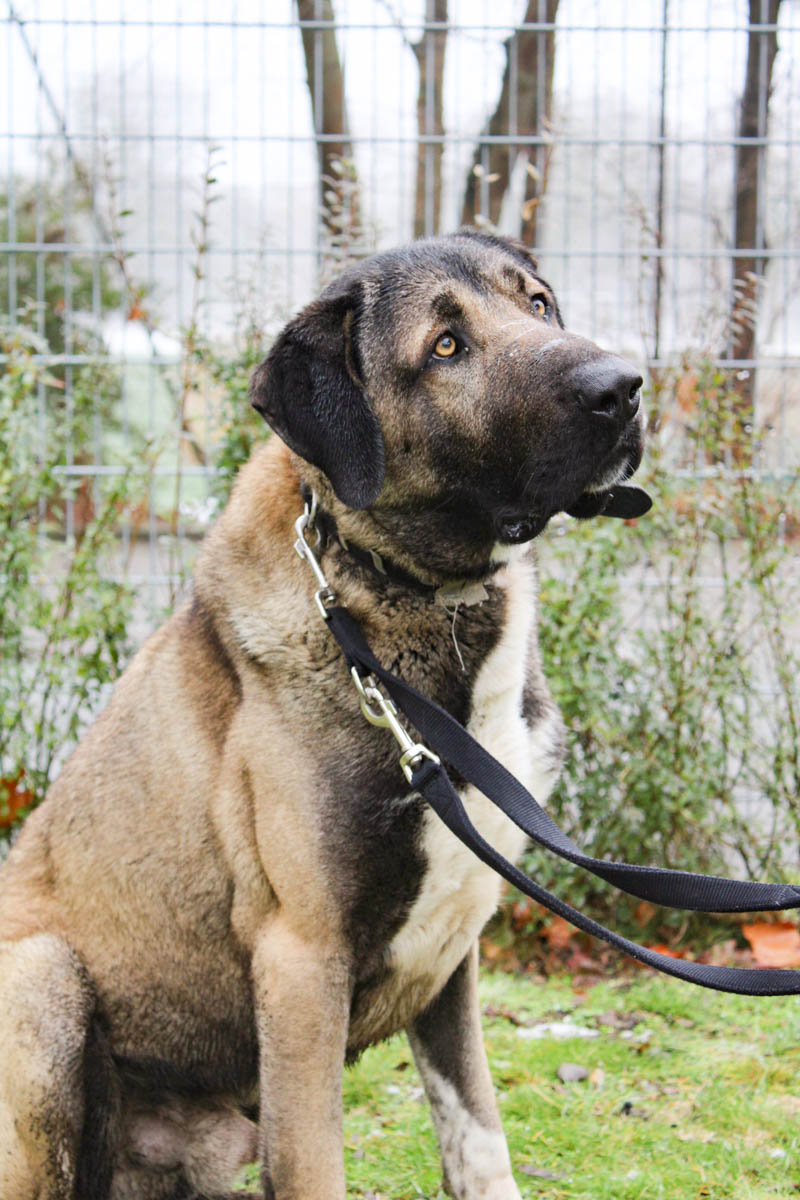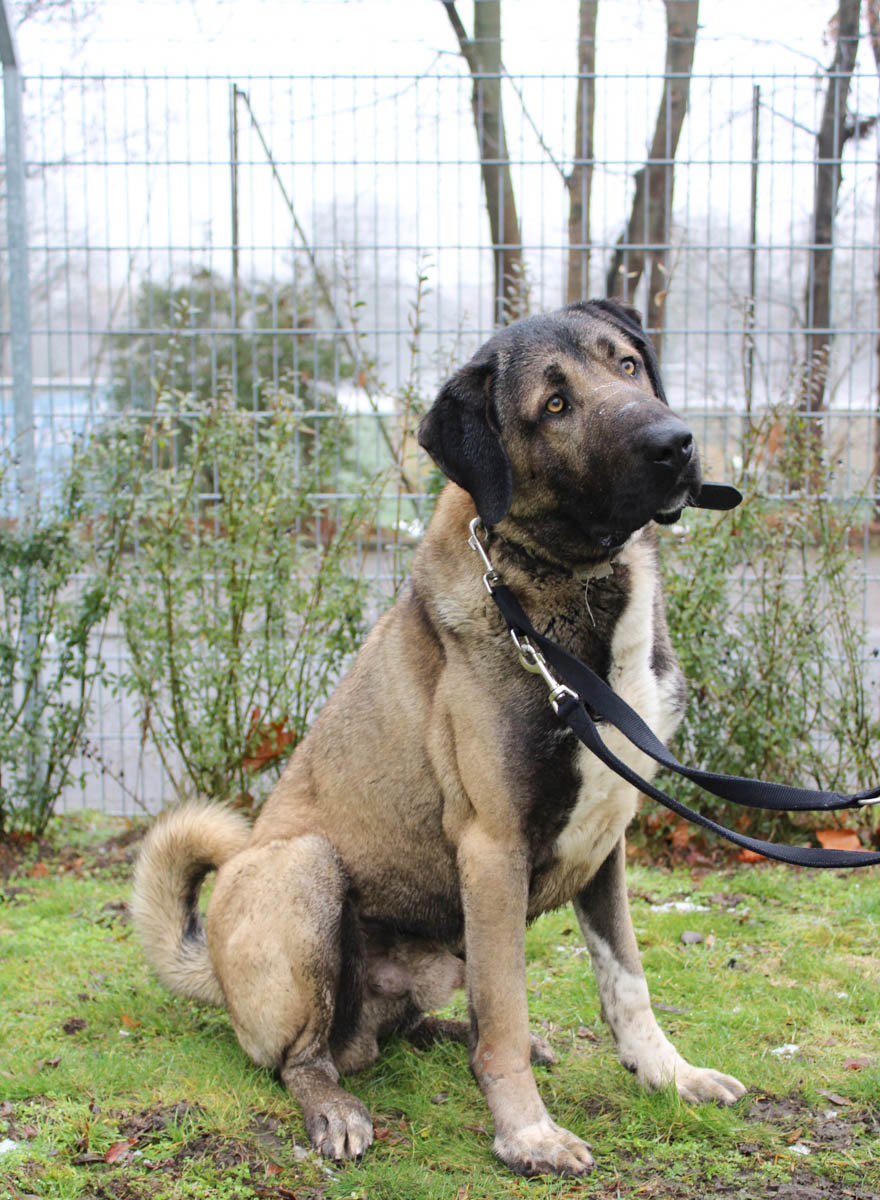 Ates ist noch nicht leinenführig und reagiert auch sehr auf andere Hunde, was einen Spaziergang nicht einfach macht. Der große Rüde wurde bislang nur zur Geländeüberwachung gehalten, daher ist es kein Wunder, dass er keine Ahnung vom kleinen 1x1 der Hundeerziehung hat. Hier haben seine neuen Menschen noch ordentlich Arbeit vor sich.