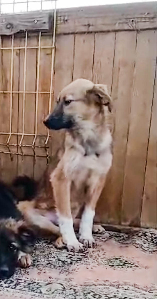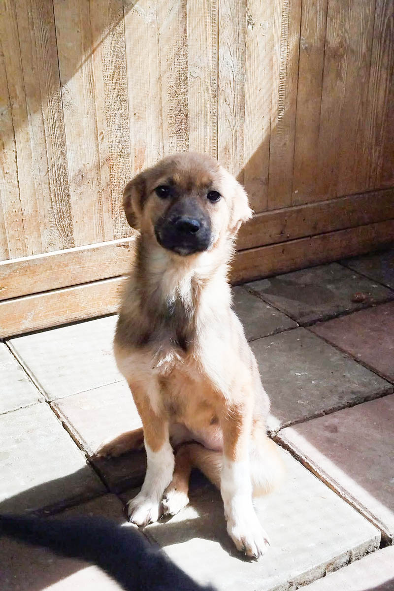 Baby sehnt sich sehr nach menschlichem Kontakt. Sie wird wahrscheinlich mittelgroß, ist gechipt, entwurmt und geimpft. (Schulterhöhe ca. 30 cm Stand 04.2026).
