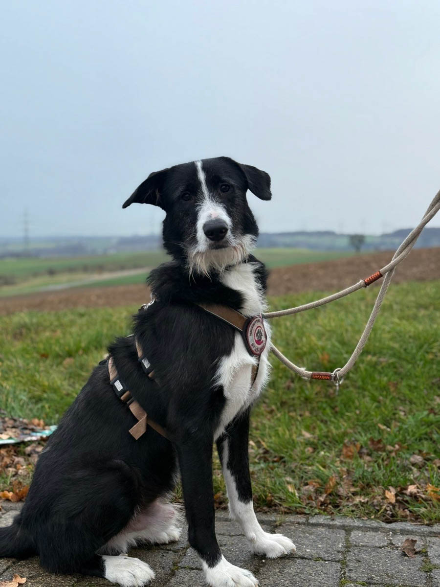 Bei Besuch zeigt sich Balou aktuell noch verunsichert: Fremde Menschen im Haus überfordern ihn noch. Mit Ruhe, Management und Training lässt sich daran arbeiten – wichtig ist, dass seine zukünftigen Menschen Verständnis dafür mitbringen und ihm den Raum geben, den er braucht. Mit anderen Hunden und auch Katzen ist Balou gut verträglich. Kinder sollten bereits älter sein.