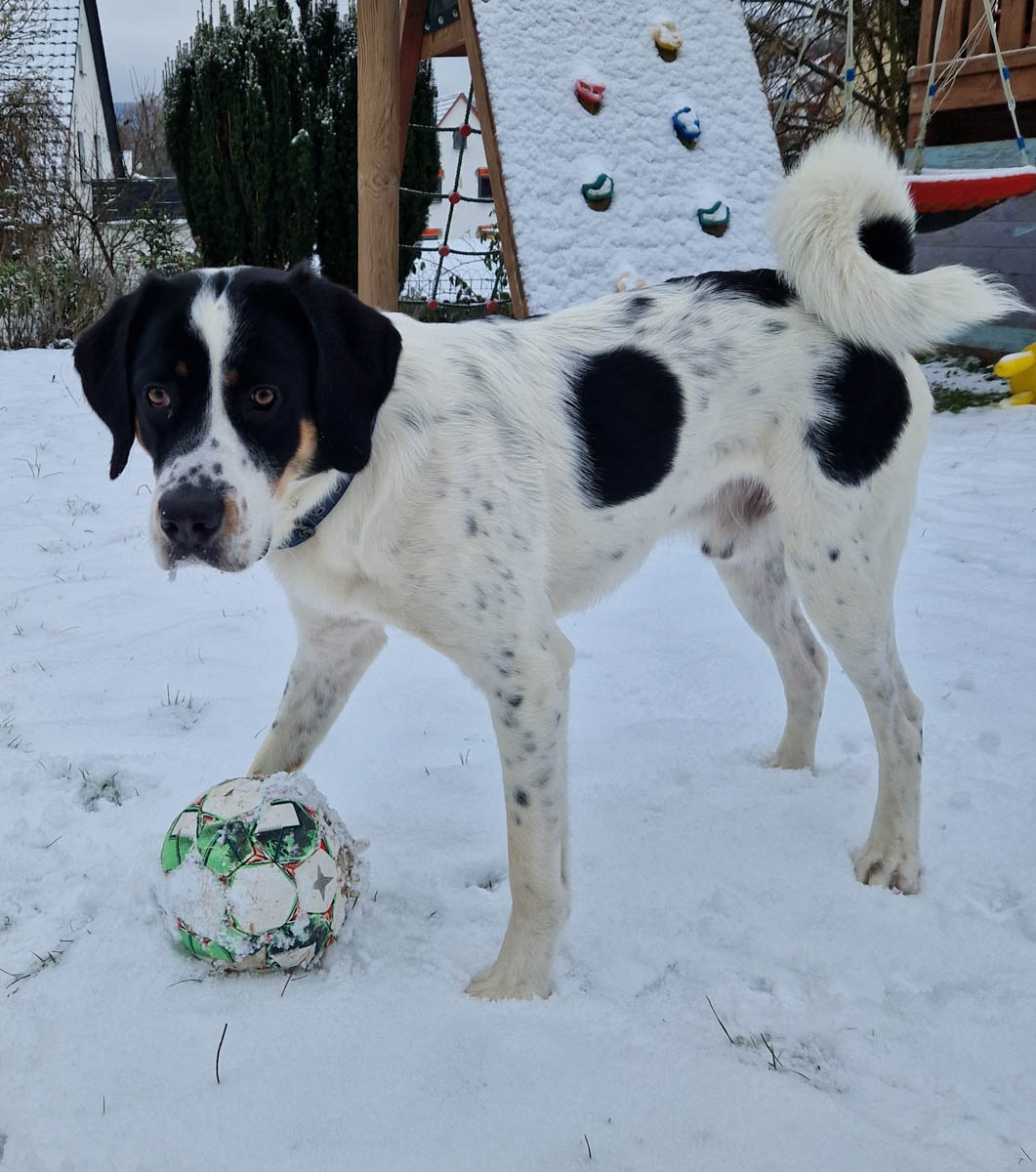 Bruno kam mit vier Monaten über einen Tierschutzverein nach Deutschland. Als vermeintlich mittelgroßer Beagle-Mix wurde er in eine Familie mit vier Kindern vermittelt. Inzwischen ist ersichtlich, dass er groß und kraftvoll wird und voller Energie steckt.