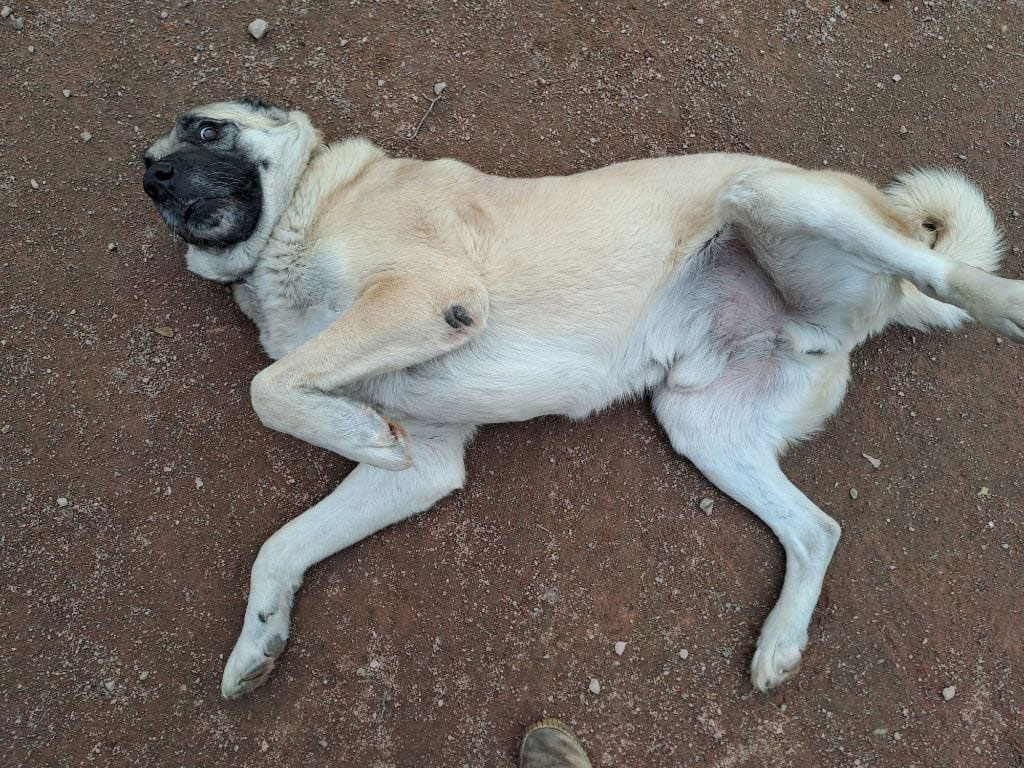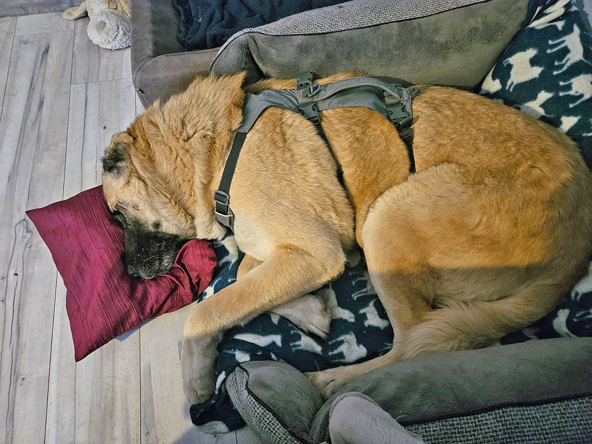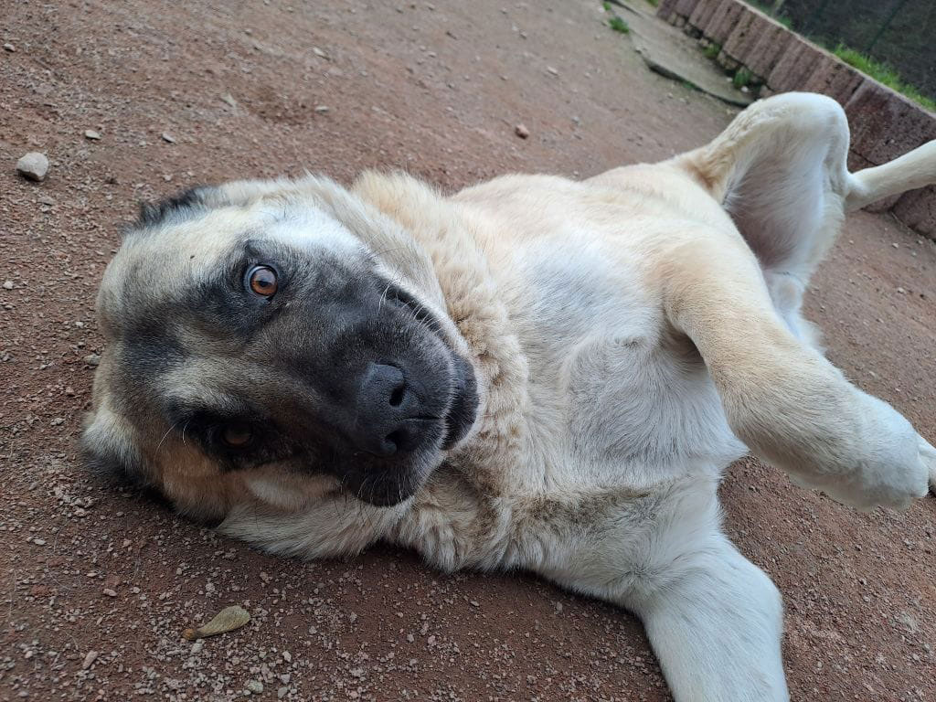 Auf dem Transport zu uns gab es einen Autounfall, bei dem er sich die Vorderbeine gestaucht hat, das ist orthopädisch abgeklärt und es ist alles bis auf leichte Arthrose im Lot. Jedoch möchten wir den Verdacht des Orthopäden nicht verheimlichen, dass eventuell ein Kreuzband angerissen sein könnte. Aktuell ist er gut unterwegs, er wird physiotherapeutisch begleitet, um die Hinterhand zu stärken. Ein mögliches späteres orthopädisches Thema sollte jedoch nicht über das hinwegtäuschen, was er ist: ein lebensfroher, liebevoller Hund mit riesigem Herzen, den man nicht übersehen kann.