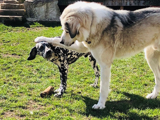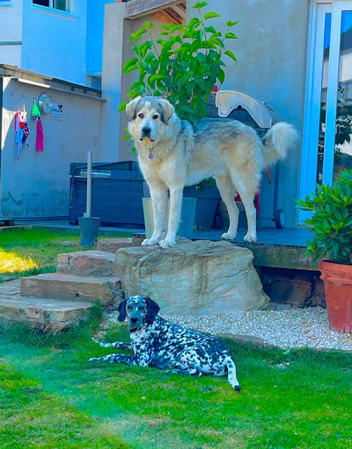 Er ist ein Mix zwischen rumänischem Herdenschutzhund und altdeutschem Schäferhund und einfach halt nur groß … er ist verfressen, verspielt, aber mit seinen knapp 5 Jahren bereits um einiges ruhiger geworden … wir hatten ihn als Welpe direkt vom "Hundevermehrer" und möchten mit ihm an dieser Stelle KEIN Geschäft machen, wir suchen ein Zuhause für ihn, wo er weiter geliebt wird.