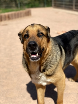 George ist einer der Hunde, die wir aus dem überfluteten Tierheim übernommen haben. Hier kommt George... übersehen werden kann er nicht ;-) Er ist ein Riese! Aber nicht nur sein Äußeres, sondern auch sein Herz ist riesengroß. George ist ein Hund, der auf der einen Seite sehr gutmütig ist, und sein Schützling Jabbadou darf so ziemlich alles mit ihm machen und George bleibt gnädig und gelassen. Auf der anderen Seite kann er auch mal seine Power zeigen und über das Gelände toben, ist dabei aber nicht wirklich ausdauernd. Menschen gegenüber ist er absolut aufgeschlossen, verschmust und ein eher ruhiger Typ. Mit anderen Hunden ist er absolut verträglich, aber auch manchmal ein wenig trampelig, so dass seine Freunde nicht zu klein sein sollten. Er ist dabei nie böse, aber ein wenig unvorsichtig. George zeigt auch immer wieder seine sehr empfindsame Seele! Man sollte sich nicht von seiner Größe und Gewicht nicht blenden lassen, sondern auch er liebt es, wenn er gehalten und für Sicherheit gesorgt wird. Was für eine beeindruckende, liebevolle, sanfte Seele!