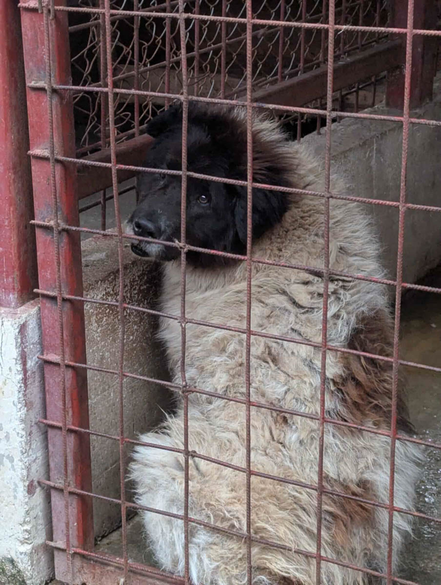 In der Klinik, in die wir Hunde bringen, wurde der 11 jährige Gio irrtümlich geschoren und sitzt jetzt nackt in der Kälte.