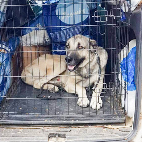 Kanga ist ein beeindruckender, großer Rüde mit einem ausgesprochen freundlichen und ausgeglichenen Wesen. Als man ihn fand, lebte er am Rand eines Dorfes, abgemagert und erschöpft. Seine kupierten Ohren deuten darauf hin, dass er zuvor als Herdenschutzhund eingesetzt wurde – eine Praxis, die leider noch vorkommt.