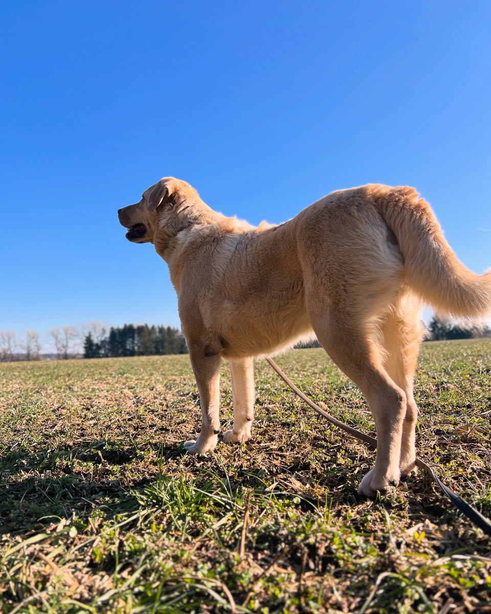 Mit Nero haben wir schon an Social Walk teilgenommen und ihn mit auf den Fußballplatz genommen. Er war bei uns bisher verträglich mit anderen Hunden, auch wenn das beim Spazieren gehen an der Leine manchmal nicht so aussieht. Beim Social Walk oder beim Spazieren gehen mit den Nachbarn und deren Hunde macht er lieb mit.