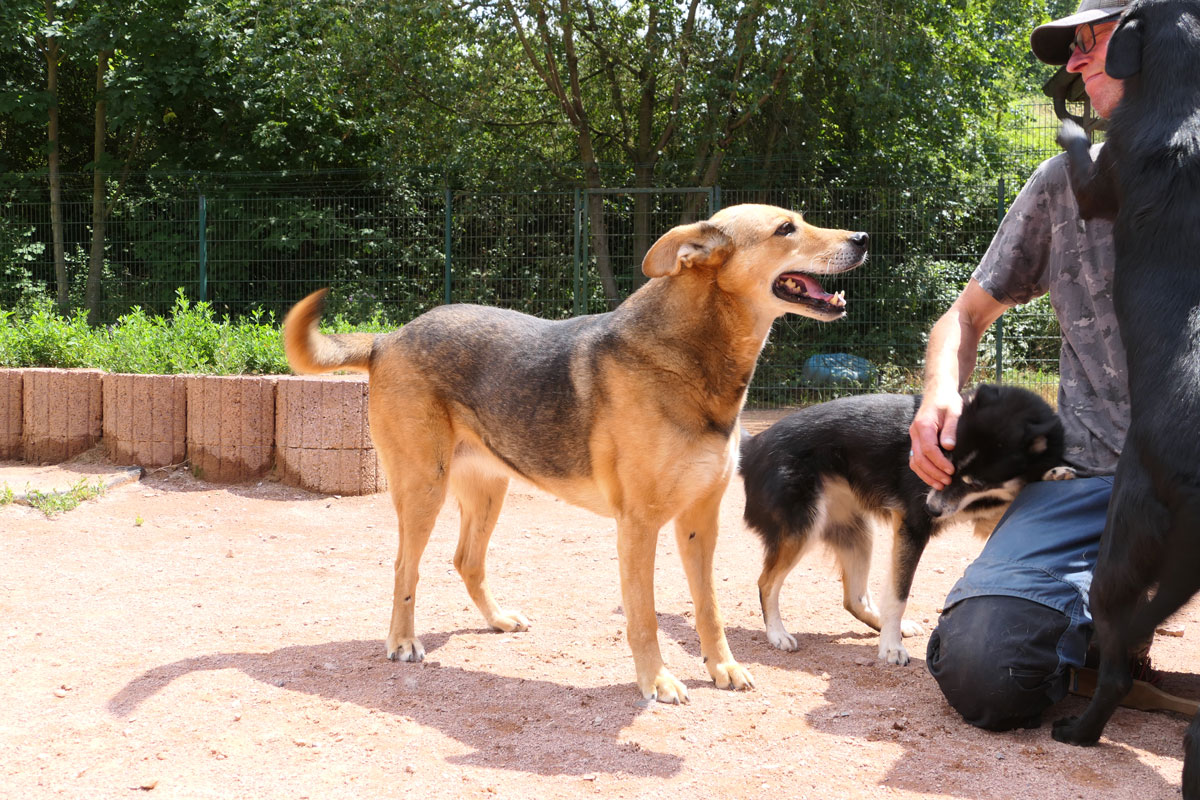 Mit anderen Hunden ist Pippa unkompliziert, sie versteht sich mit jedem, bevorzugt aber Rüden. Wenn es ums Essen geht, kann sie schon mal wegen anderen Hunden rumzicken, was aber leicht zu händeln ist. Pippa ist rücksichtsvoll, nie aufdringlich und geht Streit aus dem Weg. Feinfühlig erkennt sie, wann ihr Gegenüber genug hat. Sie spielt gerne, aber in ihrem Tempo und Maß. Sogar mit Katzen kommt sie klar.