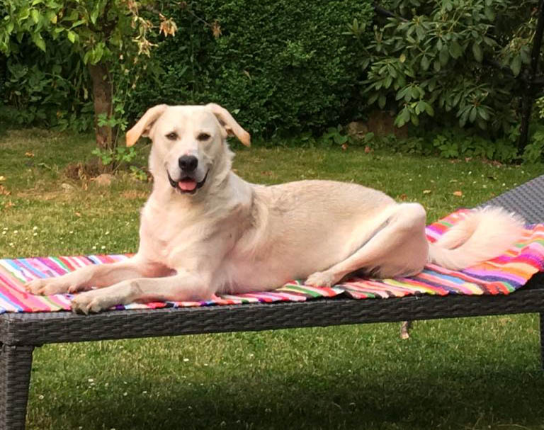 Sam wurde mit ein paar Monaten nach DE geholt, leider kamen die Besitzer nicht zurecht . Beide Parteien hatten Angst, vor einander. Wir haben ihn mit ca. 6 Monaten als Pflegestelle aufgenommen. Sehr schwach, unsicher mit eingeknickten Hinterläufen. Als Physiotherapeuten haben wir ihn stabilisieren können und ihn im ruhigen Haus und Garten mit 3 Töchtern erziehen können. Hundeschule haben wir begonnen, sowie Einzeltraining, wobei leider bei uns nie die ganze Familie die gleiche Sprache gesprochen hat. Von Anfang an hat er neue Kontakte kontrolliert und versucht es, dem Besuch durch Schnappen ungemütlich zu machen. Er beschützt uns beim Gassigehen und er lässt niemanden Neues aufs Grundstück und ins Haus. Für diese Zeit muss er streng separiert werden . Er würde immer die Führung übernehmen und sich über unsere Kommandos hinweg setzen, wobei er nie wirklich zugebissen hat.
